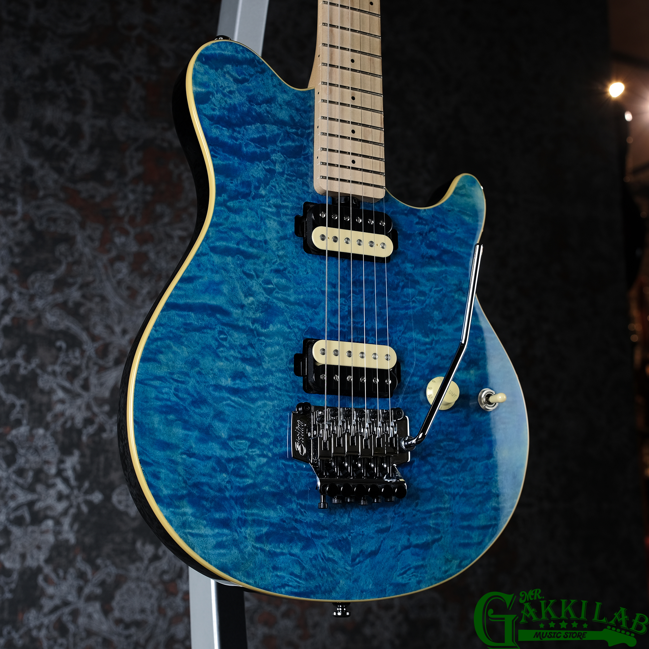 キルトメイプルの杢を引き立てる華やかなルックスの1本です。