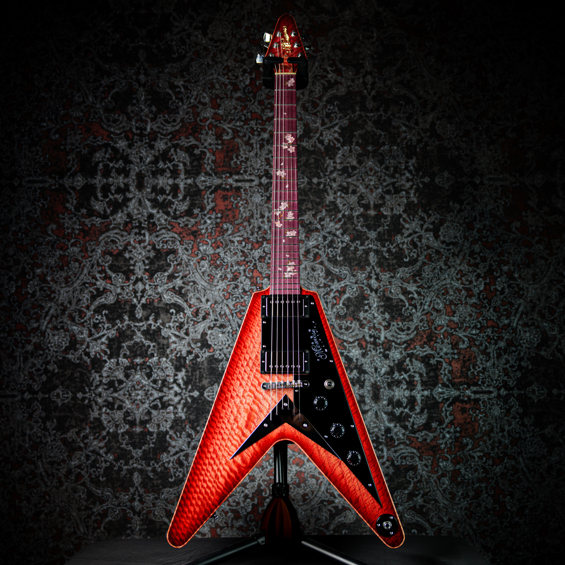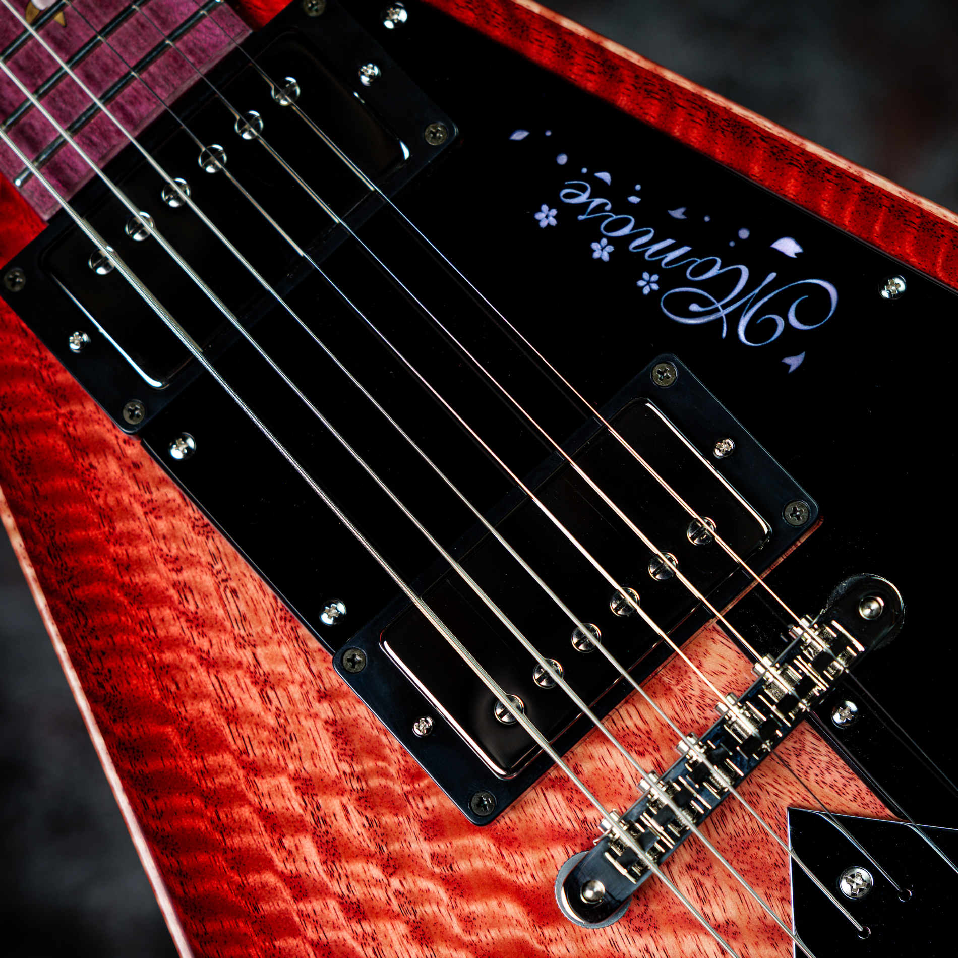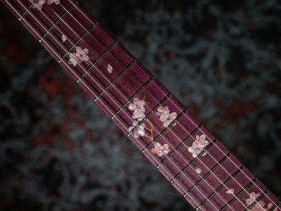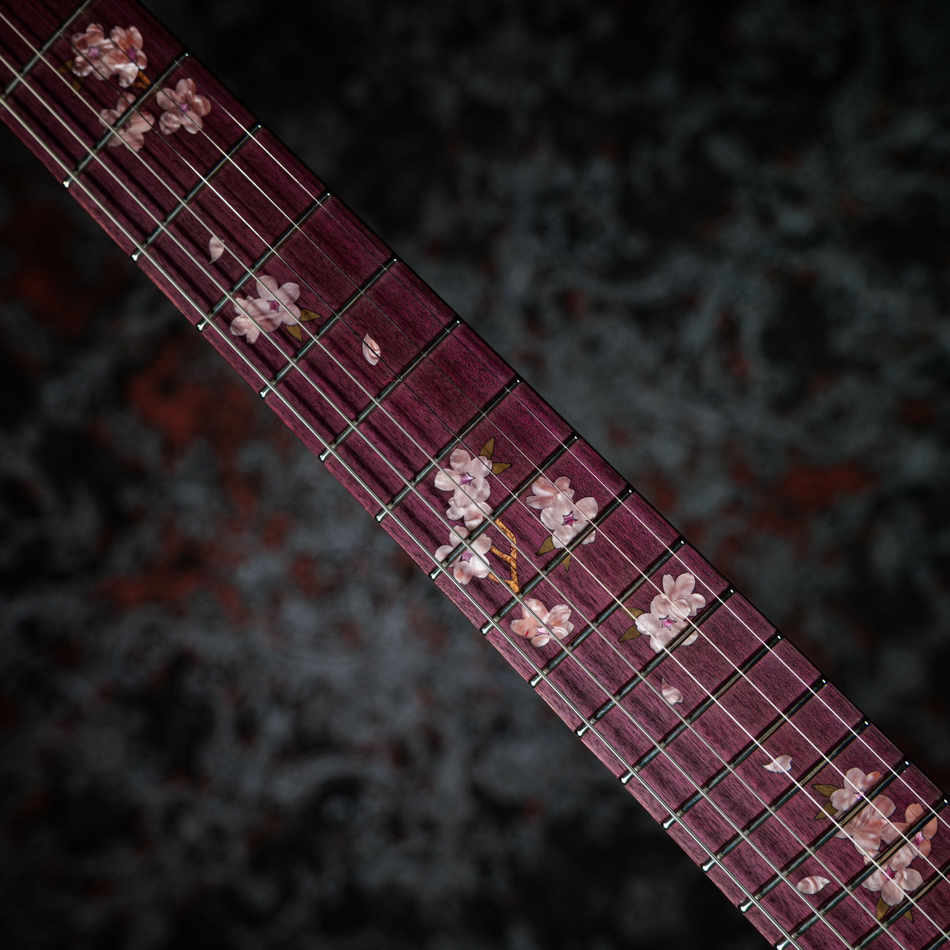 ポジションマークには、アクリルと木材を組み合わせて表現された美しい桜のインレイが施されています。