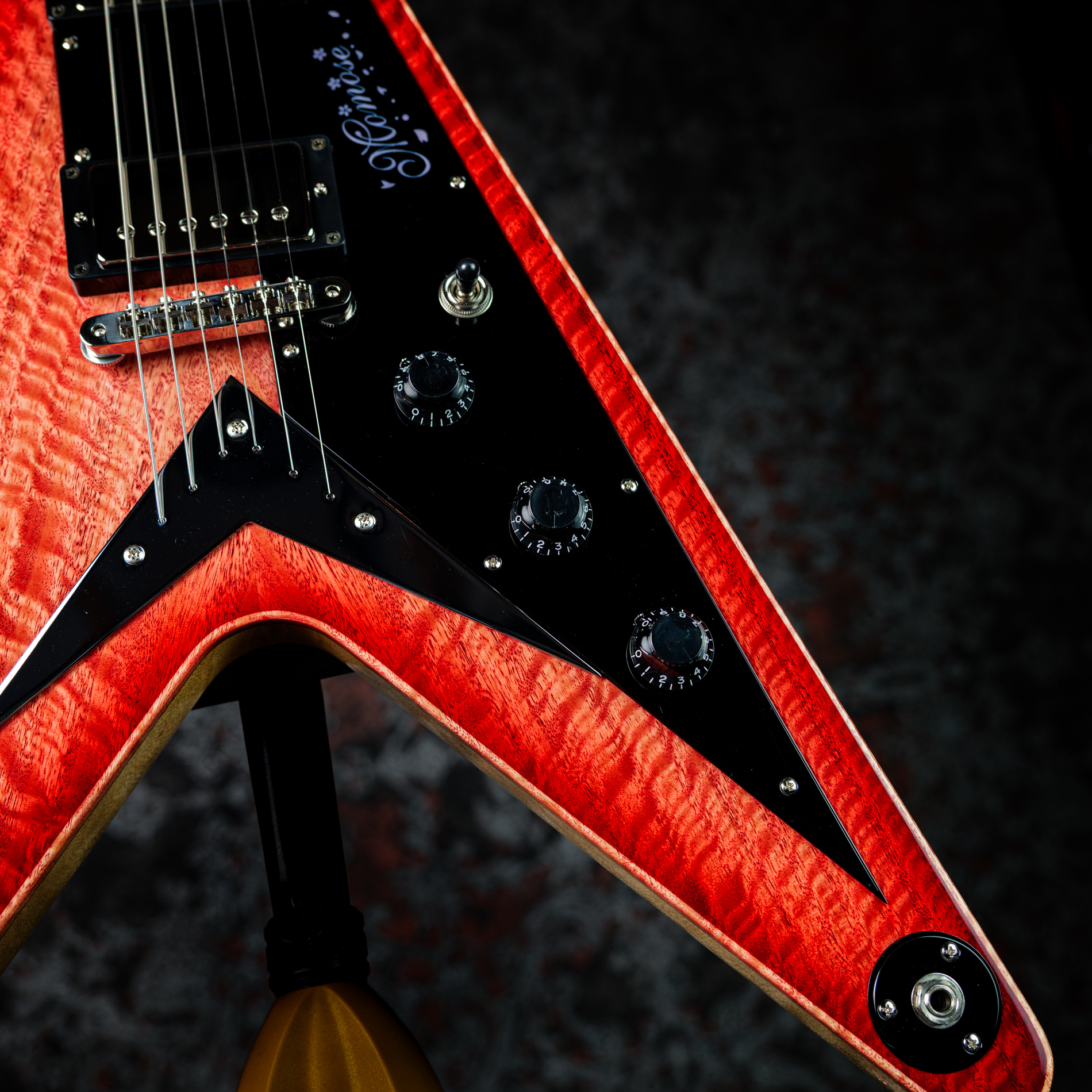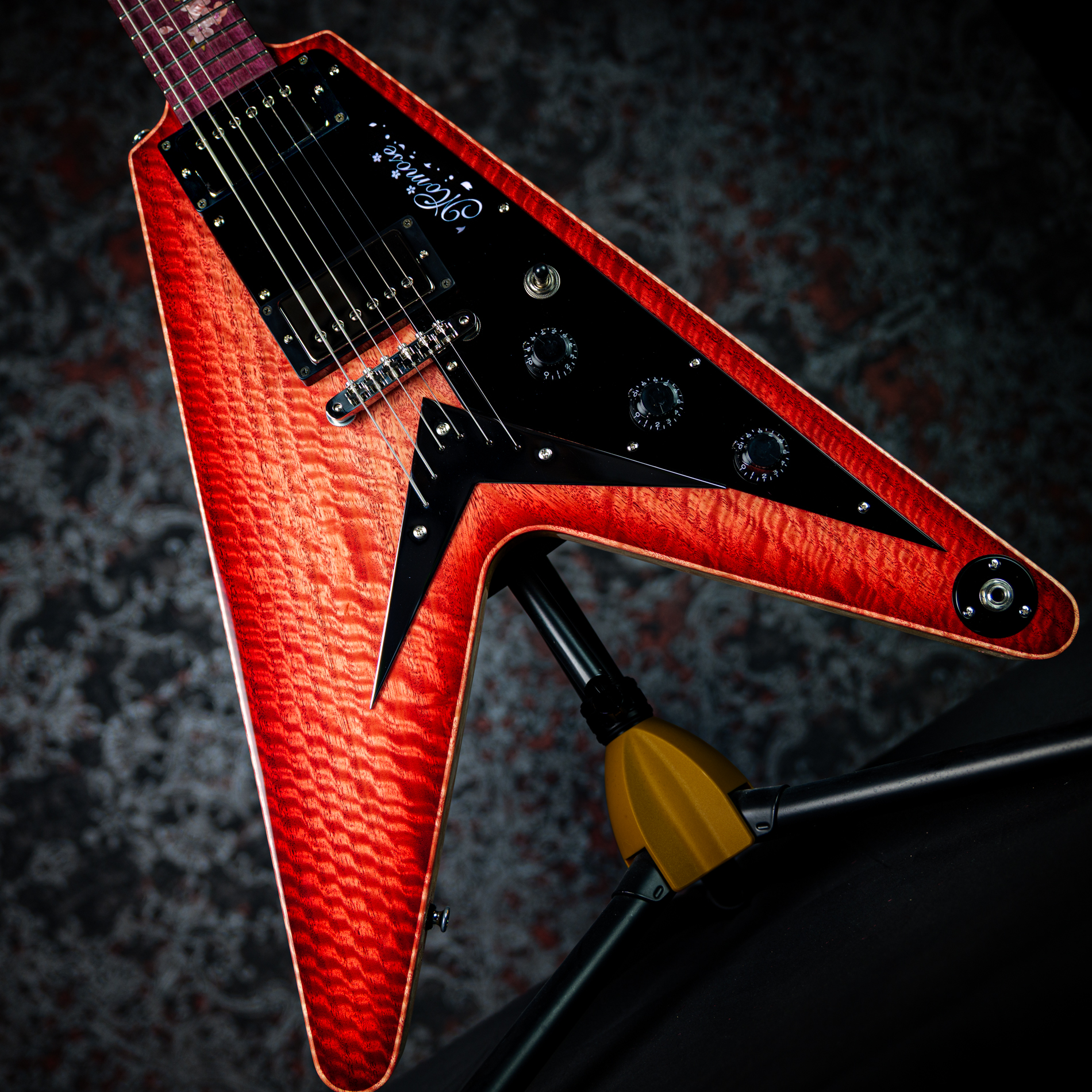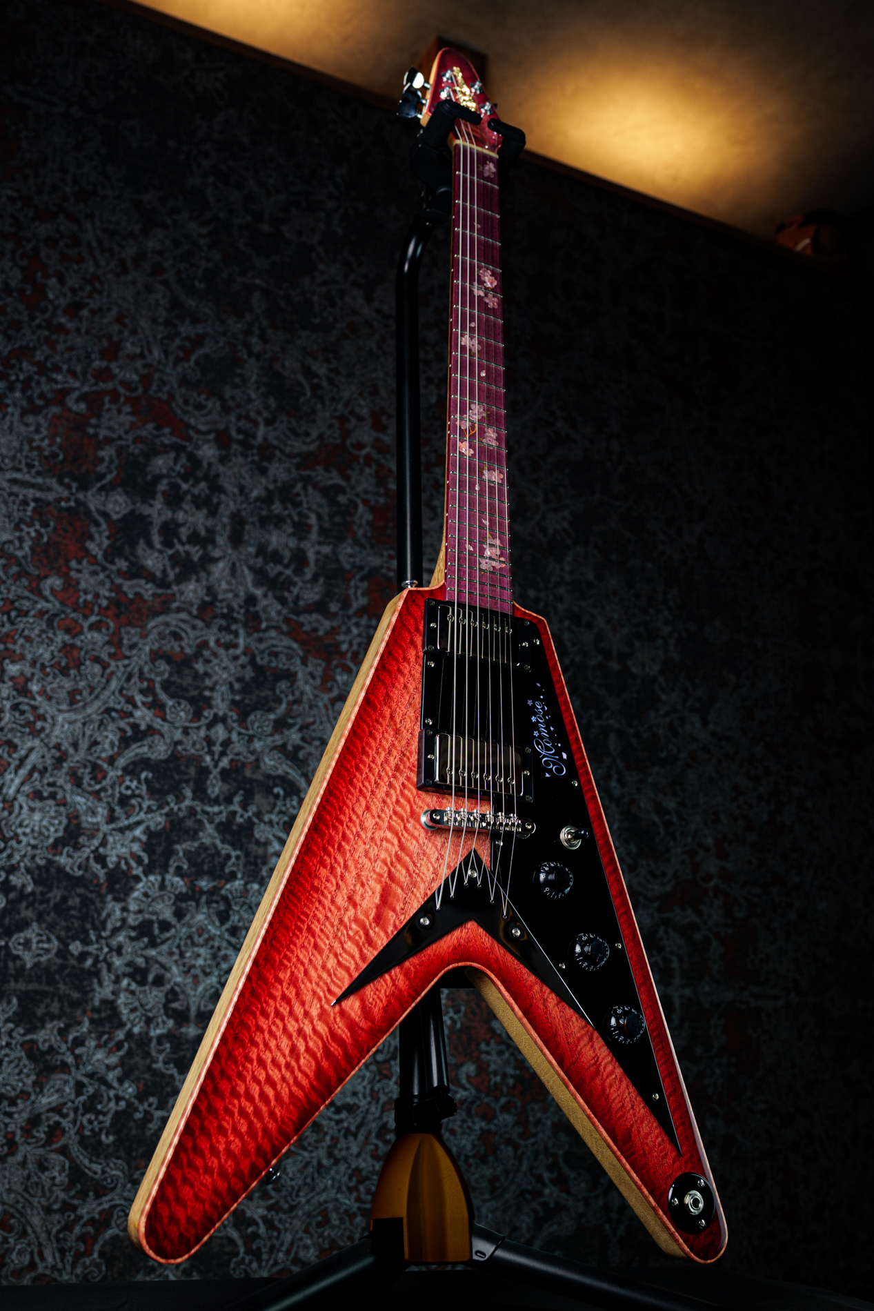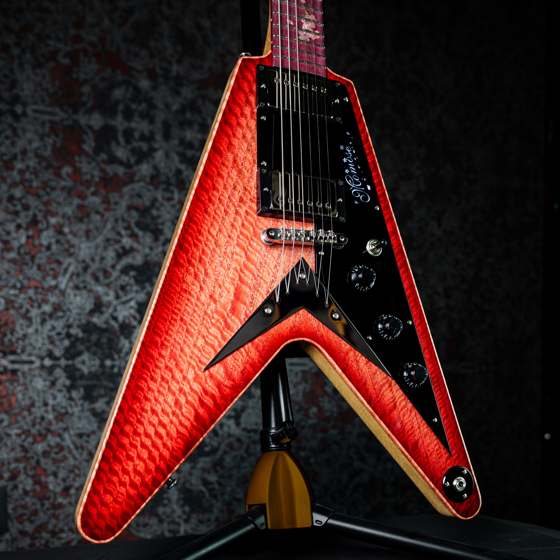 ポジションマークには、アクリルと木材を組み合わせて表現された美しい桜のインレイが施されています。