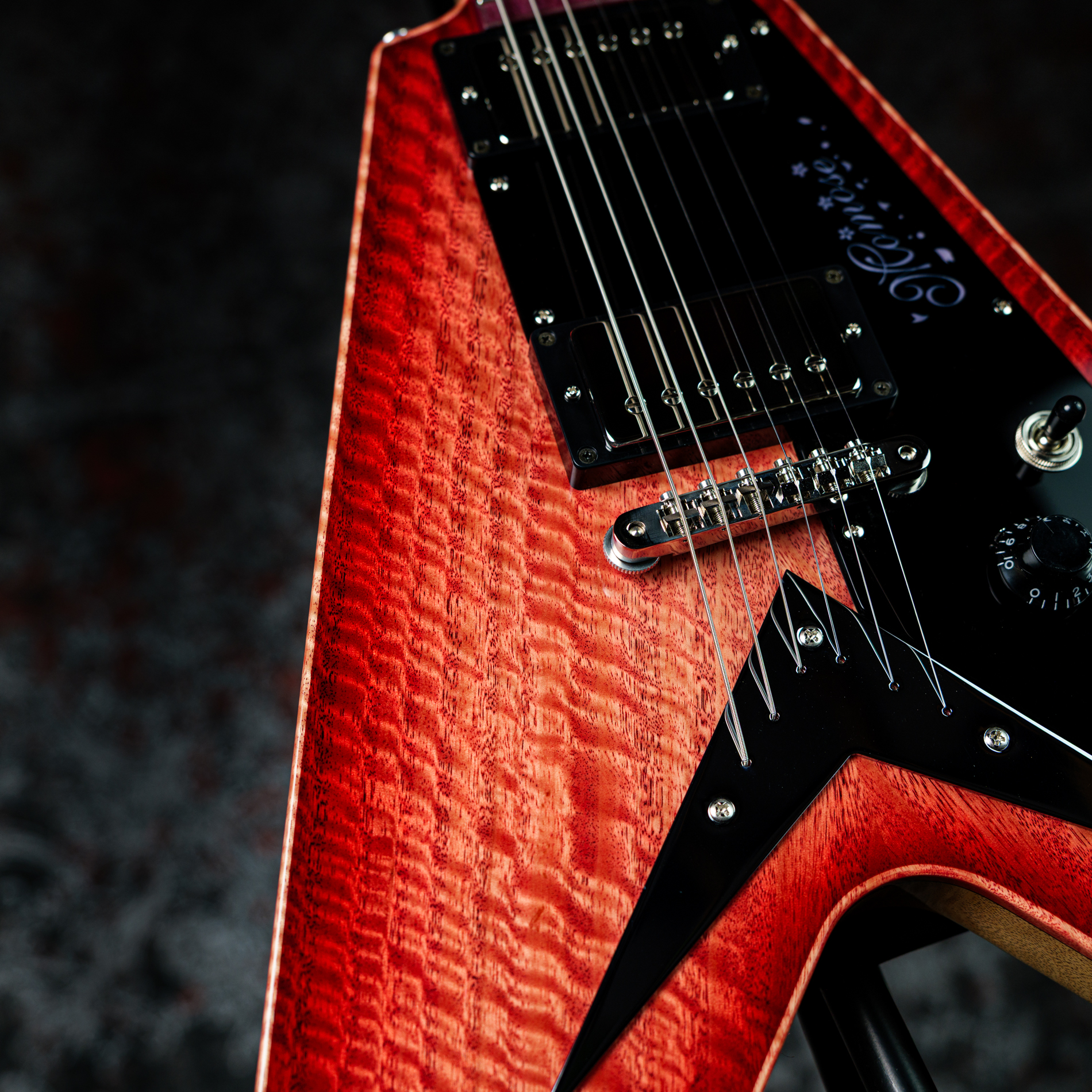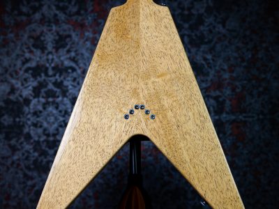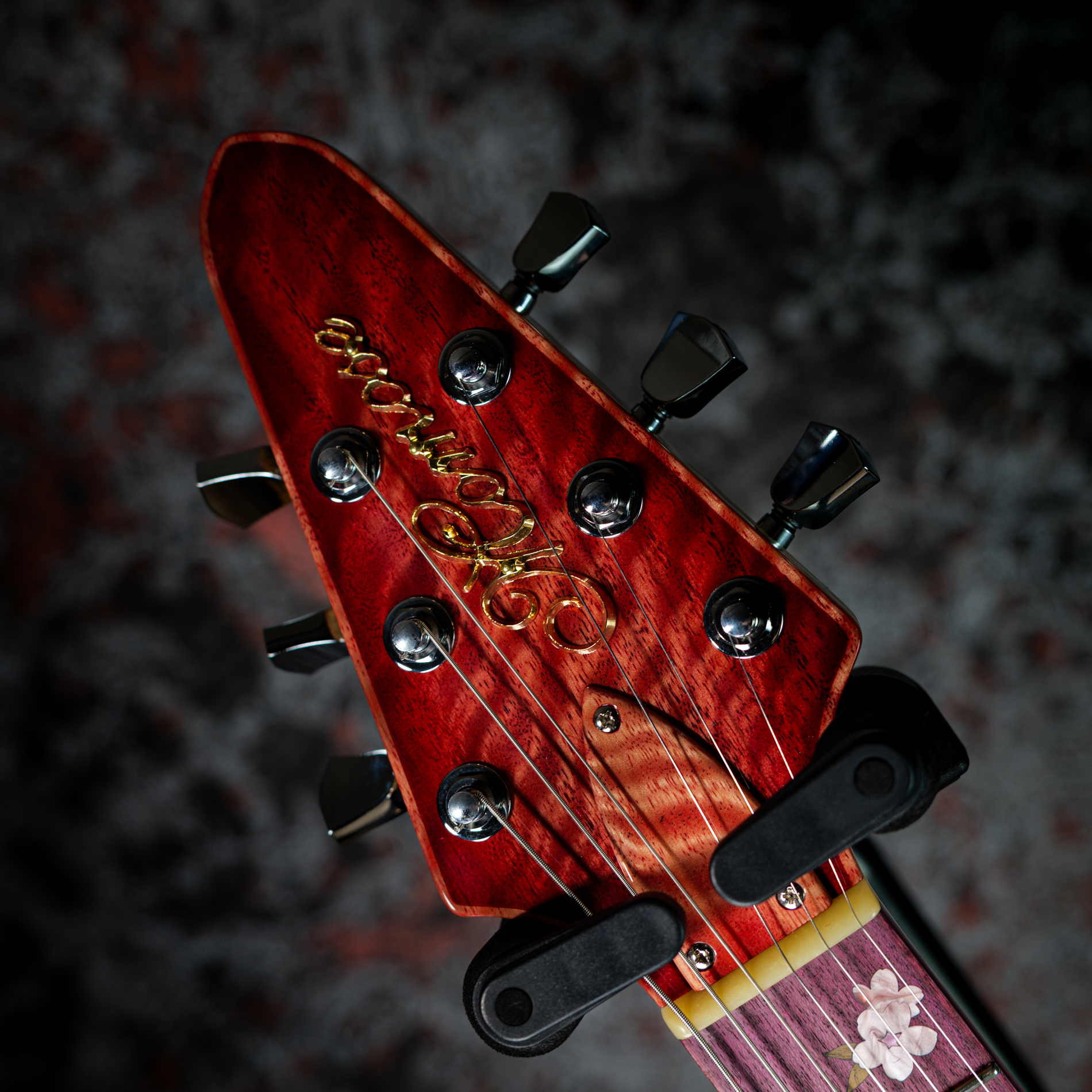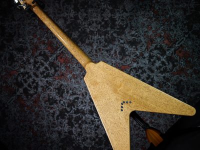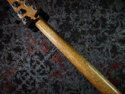 指板に用いられた「パープルハート」は、ほんのりと紫がかった見た目が特徴の木材です。