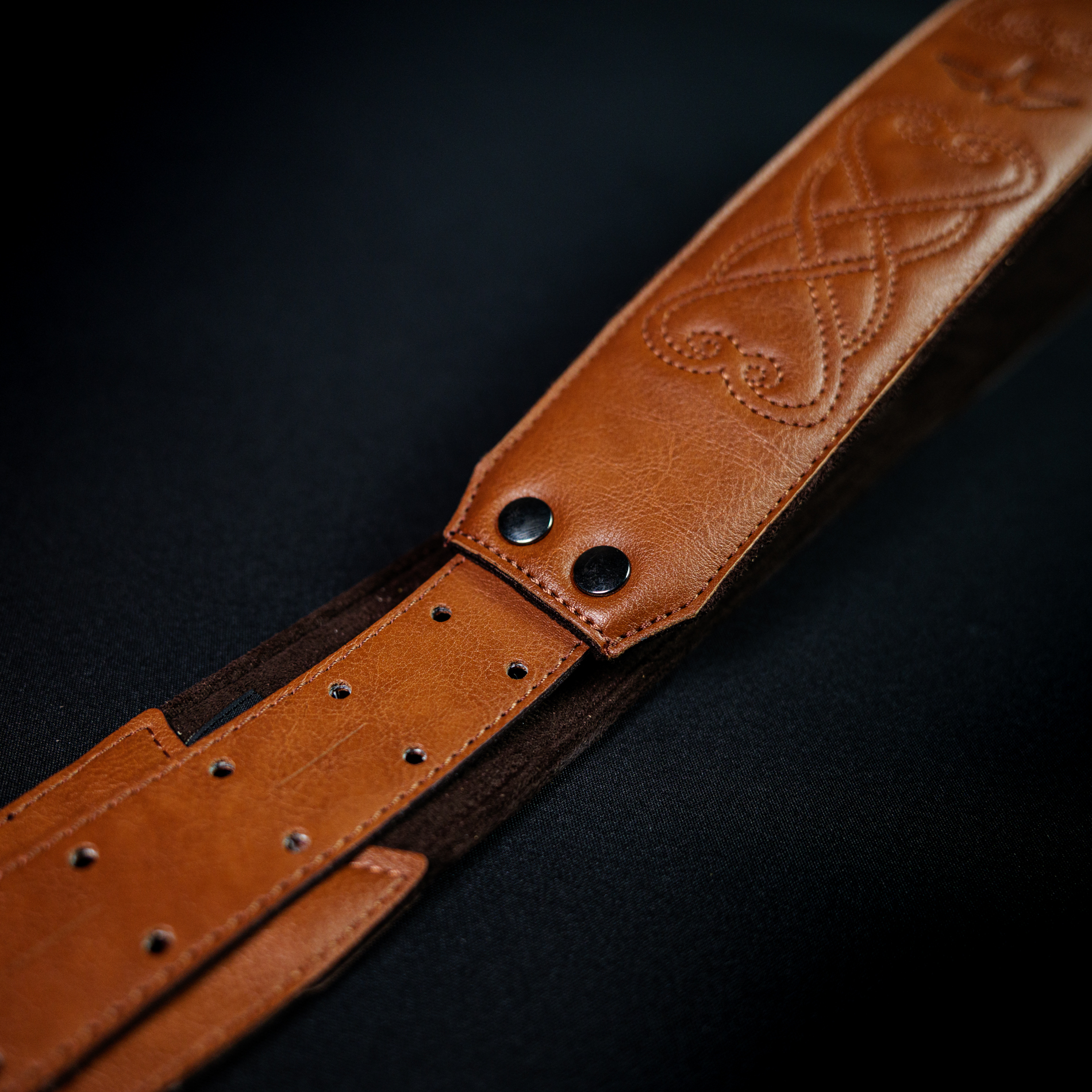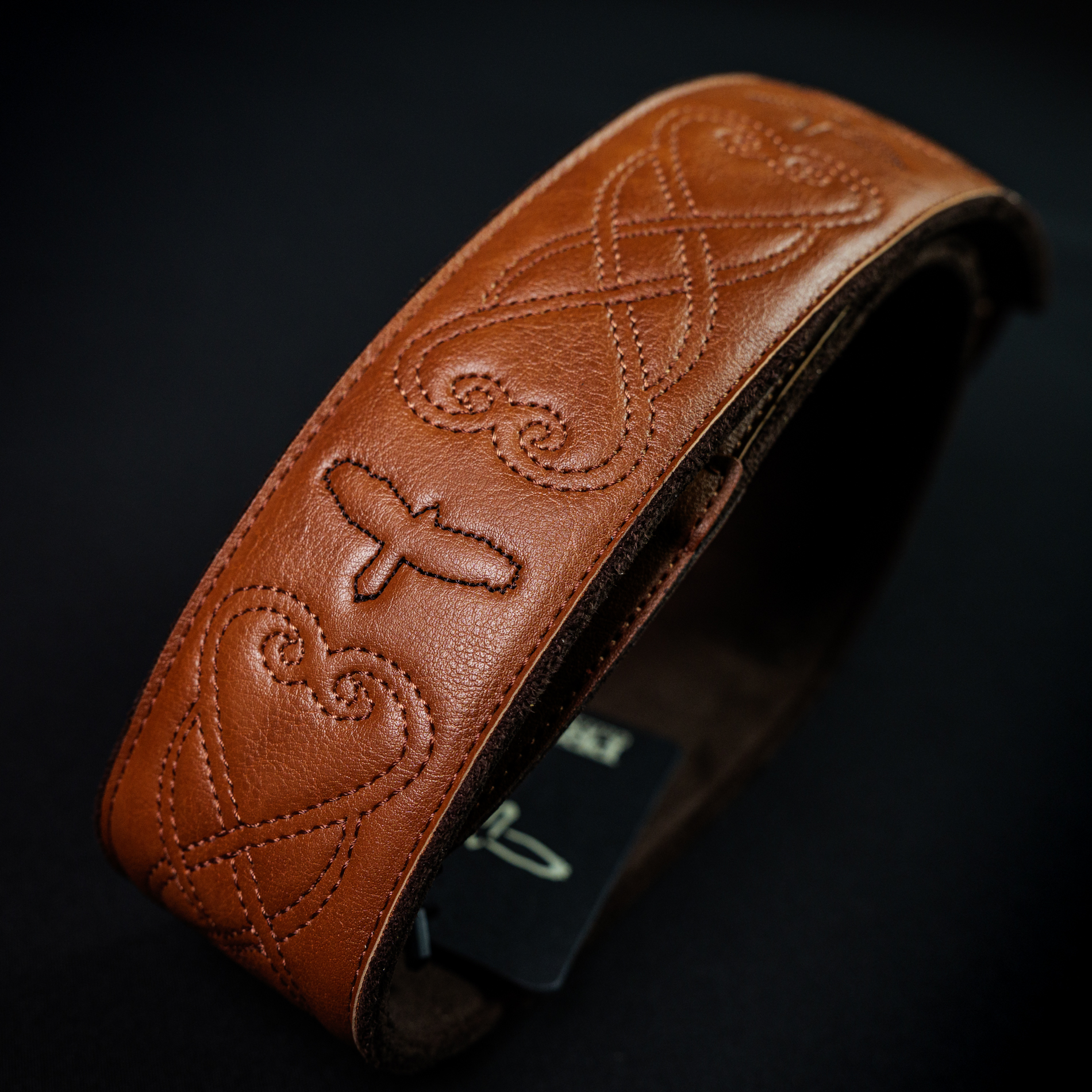「PRS 2.4″ Padded Guitar Strap w/RAS Custom Leather (Faux) Birds Tan」